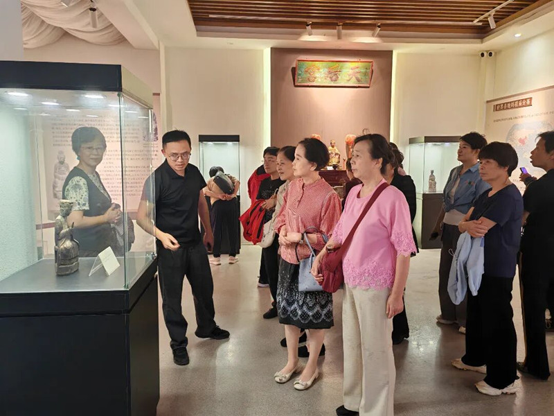 老台胞们一起走进秋日的聚龙小镇,感受相映成趣的湖光山色。他们参观了聚龙小镇美术馆,一边仔细欣赏书画作品,一边交流心得,其乐融融。随后大家信步至“一瓣香”妈祖文化展览馆,深入了解妈祖信俗的起源、发展与传播,感受妈祖文化的深厚底蕴与独特魅力。