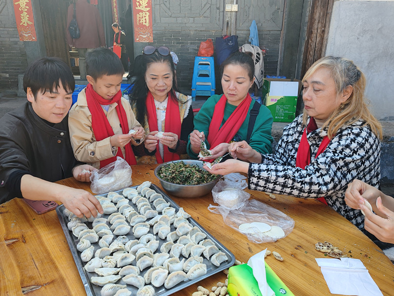古建筑庆馀堂内,台胞们围坐一桌,揉面团、包饺子、写春联,将两岸同胞的思乡情与团圆梦,包裹进饺子里、写进笔墨里,让华夏儿女的家国情、统一愿流转在笑语间。兴致盎然处,台胞们即兴献唱,婉转唱腔与阵阵掌声交织,让古厝焕发别样生机,也让客家民俗与台湾风情在互动中交融共生。