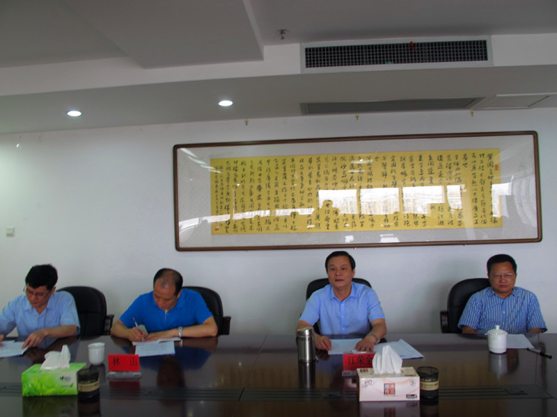 江荣全书记(右2)对省台联工会工作提出希望,梁志强副会长(右1)参加会议