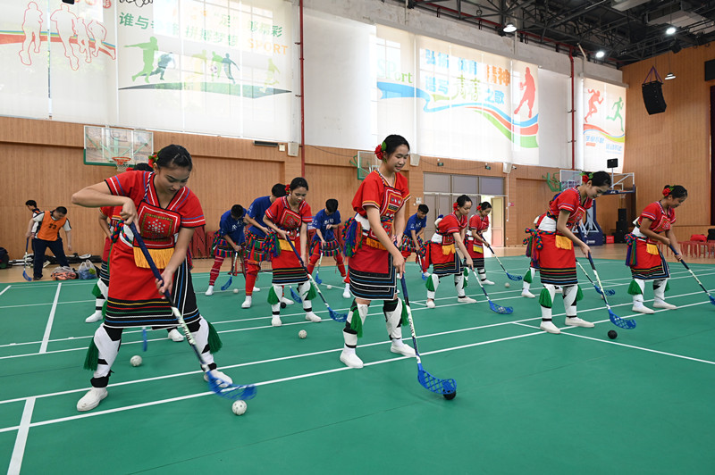 随后,台湾青少年在华侨中学师生带领下,体验了版画拓印,并与大陆学生开展旱地冰球友谊赛。