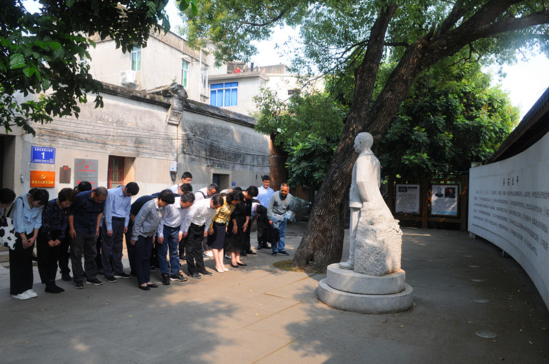 福州市仓山区螺洲镇的吴石故居,气氛庄严肃穆。党员们佩戴党徽,仪态庄重,瞻仰吴石烈士生活过的地方,重温了吴石、朱谌之等革命烈士为祖国和民族解放,为祖国统一大业而不惜抛头颅洒热血的峥嵘岁月,思想受到了洗礼、灵魂受到了触动,党性得到了升华。英雄浩气,山河永在。烈士忠魂,民族永记。吴石烈士雕像前,党员们三鞠躬并献上鲜花,祭奠革命英烈,深深表达了对革命烈士的无限缅怀和无限崇敬之情。