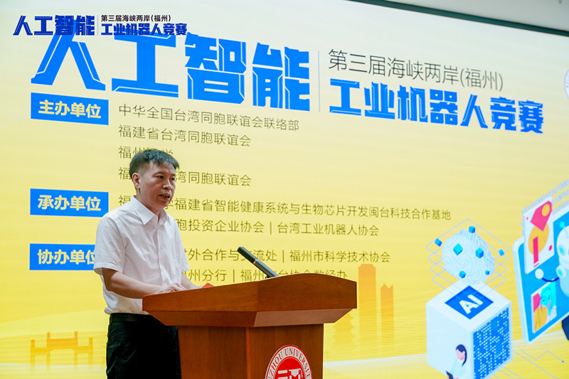 7月12日,以“智创未来 融通两岸”为主题的第三届海峡两岸(福州)人工智能——工业机器人竞赛在福州大学旗山校区举办。福建省台联党组书记刘良辉,福州大学党委常委、副校长杨黄浩,福州市台联会长杨军,福州市台协会会长蒋佩琪以及台湾嘉宾、裁判组、参赛队伍师生等200余人出席活动。
