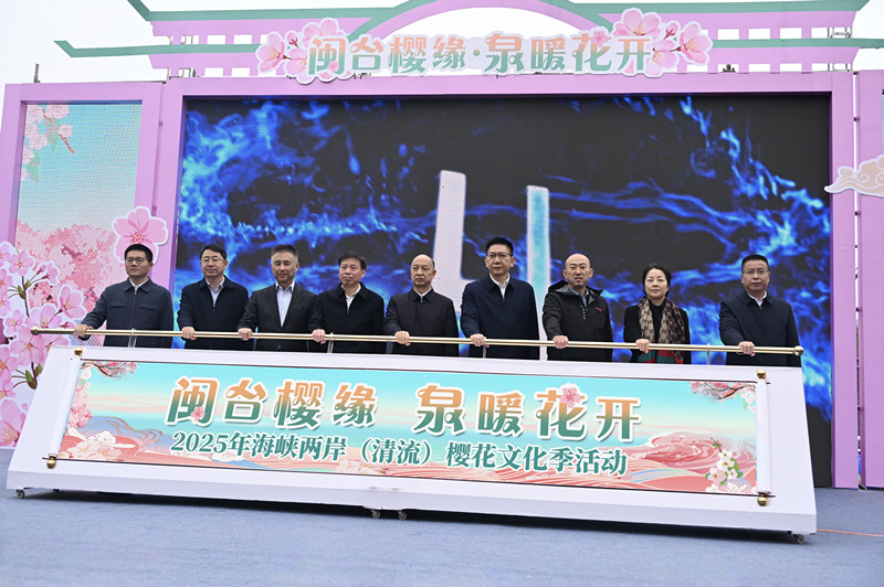 2月21日,在精彩纷呈的文艺表演中,2025年海峡两岸(清流)樱花文化季在清流赖坊樱花园隆重开幕。全国台联会长郑建闽、全国台联联络部部长任挥、福建省台联党组书记刘良辉、上海市台联党组书记李海泳、福建省海外联谊会副会长李文慎、福建省台办副主任翁云萍、三明市海外联谊会会长黄冠华、清流县委书记吴钟民、清流县县长莫彩华、三明市台办主任朱昶凯、三明市台联会长沈杰等出席开幕式。