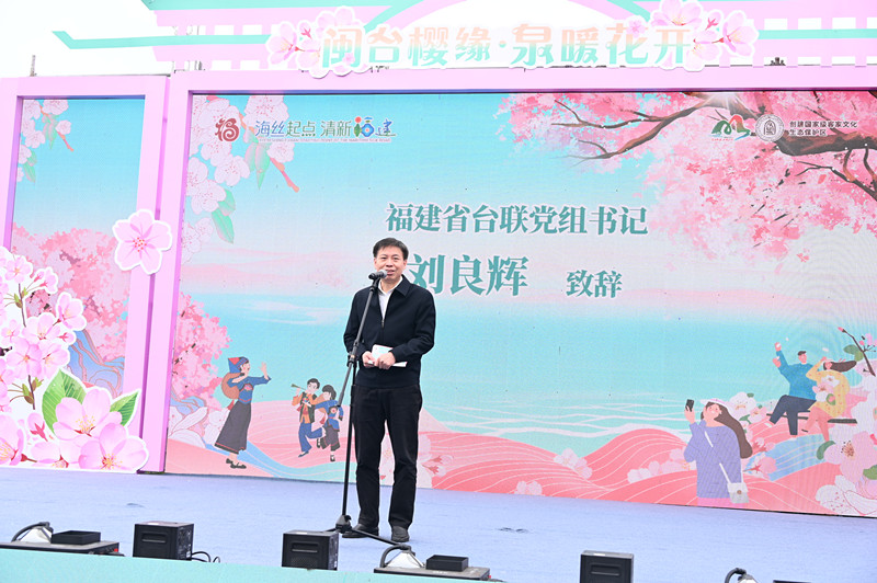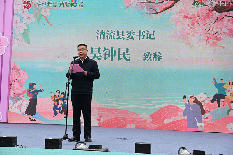 吴钟民在致辞中介绍了赖坊樱花园和此次樱花文化季的情况,期待以樱为媒、以花会友,以“两岸共赏一树春”美好行程,进一步拉近两岸同胞的心灵距离,共同谱写“两岸一家亲、闽台亲上亲”的生动新篇章。