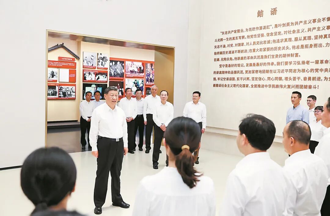 7日下午,习近平来到位于梅州市梅县区雁洋镇的叶剑英纪念园。在叶剑英纪念馆,习近平向叶剑英铜像敬献花篮,参观叶剑英生平事迹陈列。随后,又参观叶剑英故居。习近平强调,我们今天取得的伟大成就,都是建立在毛泽东等老一辈革命家打下的江山、攒下的家底之上的。要结合党史宣传教育,讲好老一辈无产阶级革命家的故事,教育引导广大干部群众特别是青少年传承红色基因、赓续红色血脉,永远听党话、跟党走。